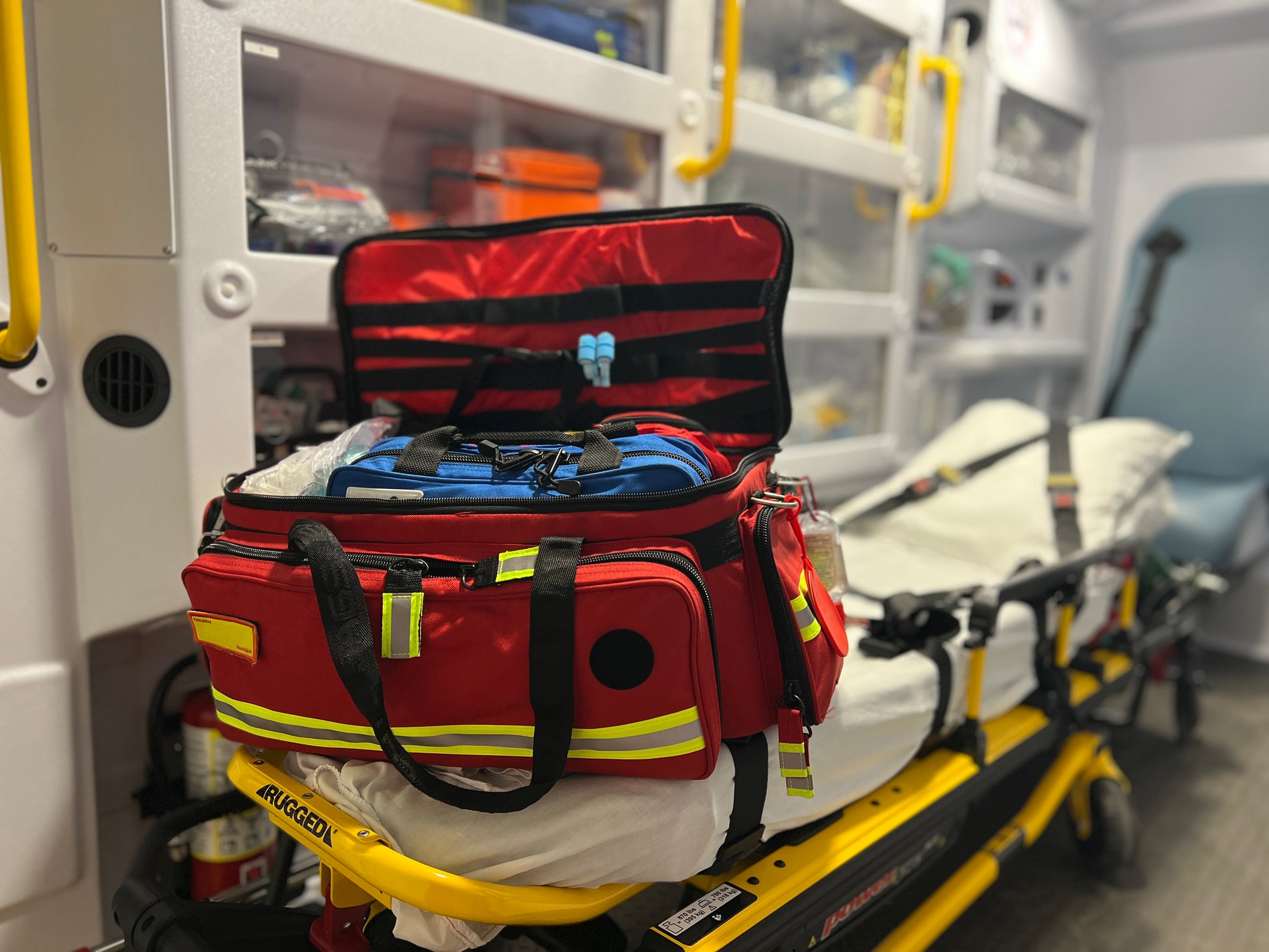Soft Padded Quick Grip Handles Removable Name Tape and Logo Expandable Storage Pockets 1000D Polyamide Materials HD Metal YKK Zippers Large Side Pockets w/Clear View Pouches Modules Included (Velcro Backing) Five Detachable Colored Modules One Isothermal Ampoule Holder Oxygen Cylinder Compatible w/Pass-through Oxygen Cylinder Adjustable Straps Large 29.5"x13.7"x24" Size |